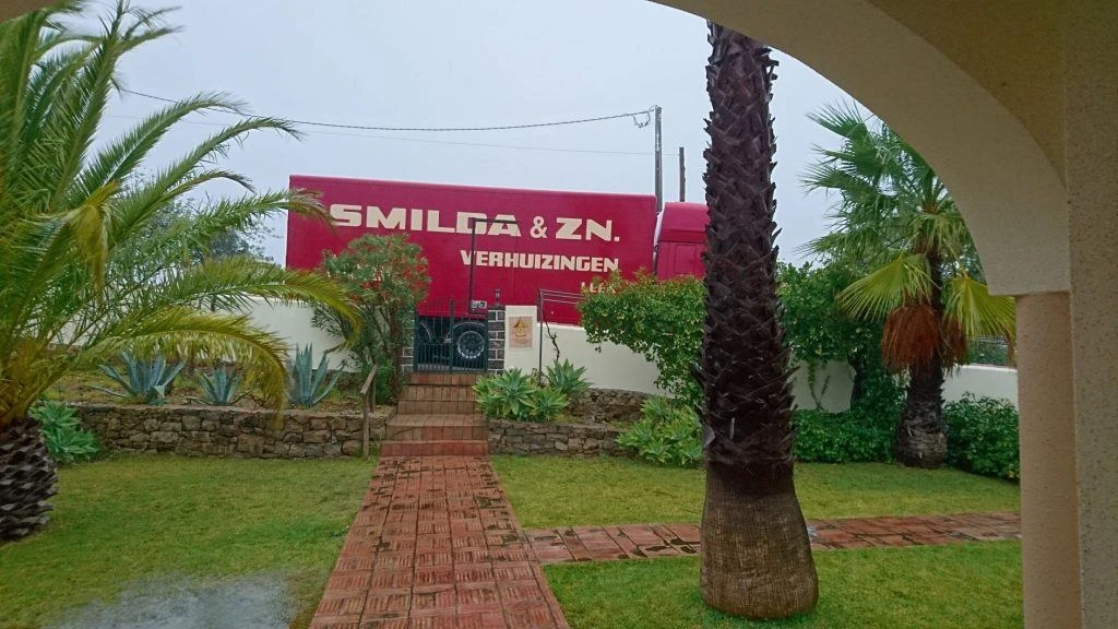 Foto: Verhuiswagen van Smilda & Zn. nat door de regen in Portugal